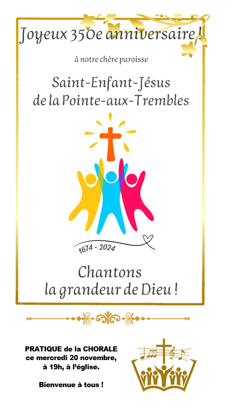 Joyeux anniversaire à tous nos frères et sœurs de la paroisse qui célèbrent leur anniversaire de naissance ou de mariage durant le mois de novembre 2024. Nous vous assurons de notre prière fraternelle.