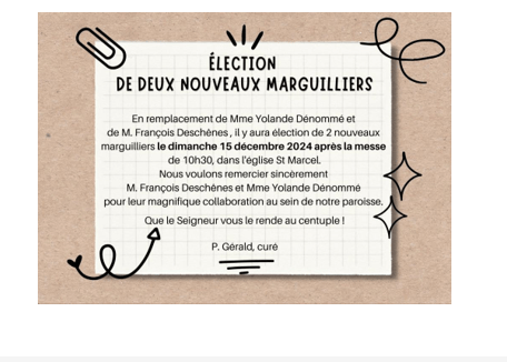 N.B. Si vous voulez avoir des informations additionnelles concernant les Finances de la Fabrique de la Paroisse, n’hésitez pas à communiquer avec Roland Demers, trésorier non marguillier: