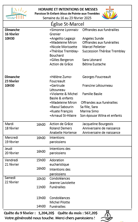 et sur le site web de la Paroisse Saint-Enfant-Jésus, PAROISSESEJ.COM, entrez votre courriel – pour recevoir des alertes de nouvelle chaque semaine.