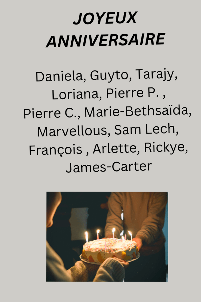 Joyeux anniversaire à tous nos frères et sœurs de la paroisse qui célèbrent leur anniversaire de naissance ou de mariage durant le mois de mai 2025. Nous vous assurons de notre prière fraternelle.