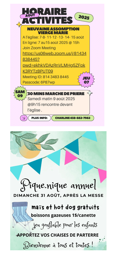 Joyeux anniversaire à tous nos frères et sœurs de la paroisse qui célèbrent leur anniversaire de naissance ou de mariage durant le mois d’août 2025. Nous vous assurons de notre prière fraternelle.