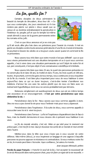 Homélie du 33e dimanche Ordinaire C Luc 21, 5-19