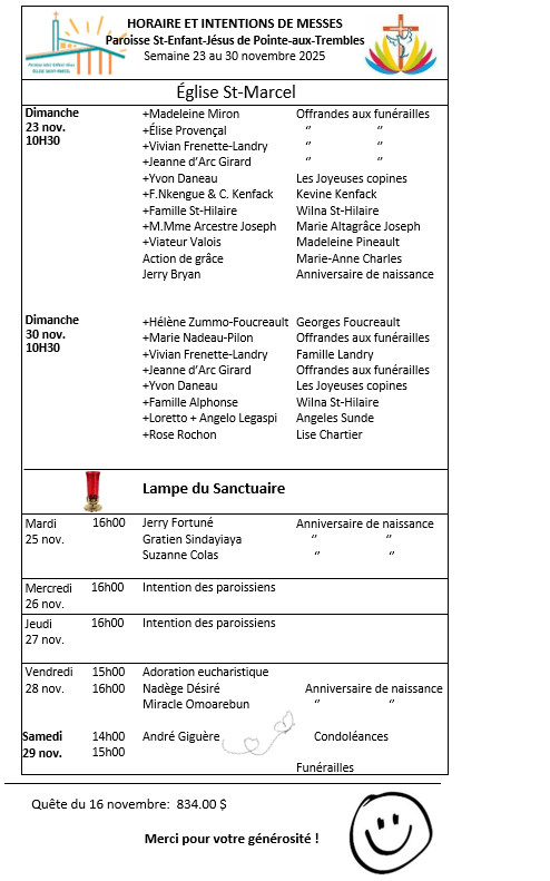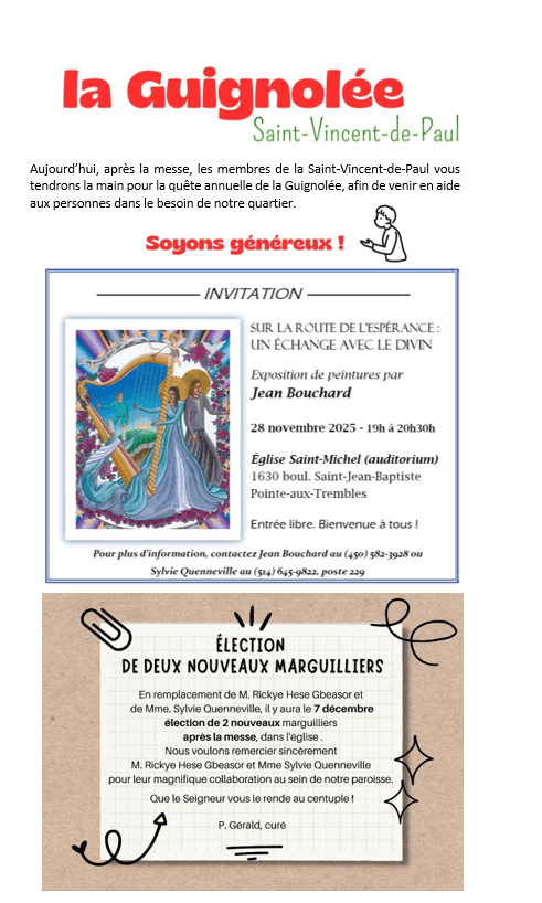 Joyeux anniversaire à tous nos frères et sœurs de la paroisse qui célèbrent leur anniversaire de naissance ou de mariage durant le mois de novembre 2025. Nous vous assurons de notre prière fraternelle.
