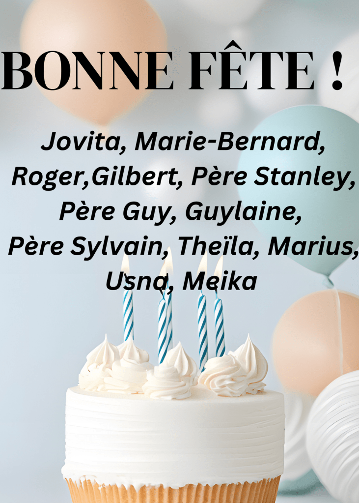 Joyeux anniversaire à tous nos frères et sœurs de la paroisse qui célèbrent leur anniversaire de naissance ou de mariage durant le mois de décembre 2025. Nous vous assurons de notre prière fraternelle.