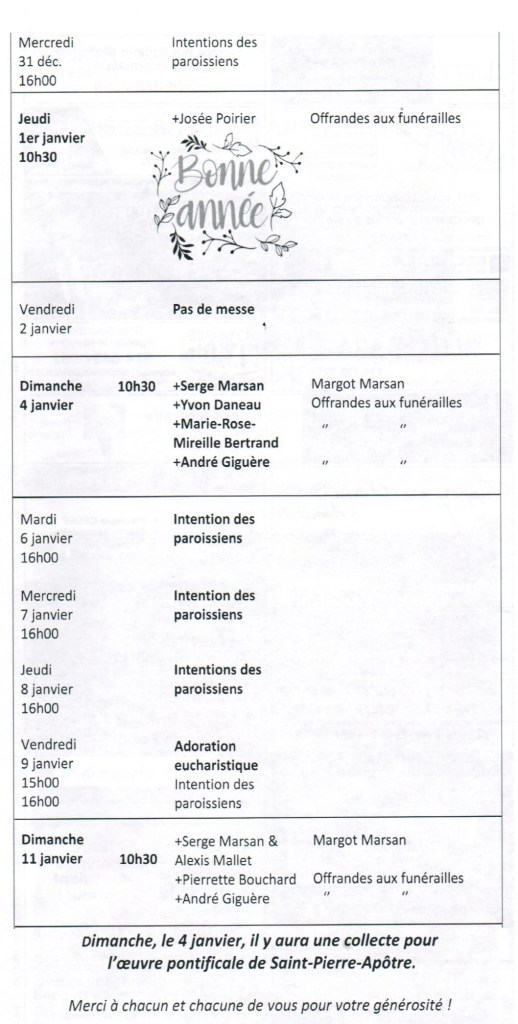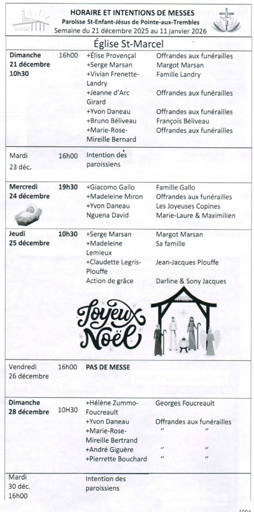 Joyeux anniversaire à tous nos frères et sœurs de la paroisse qui célèbrent leur anniversaire de naissance ou de mariage durant le mois de décembre 2025. Nous vous assurons de notre prière fraternelle.