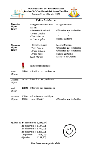 Joyeux anniversaire à tous nos frères et sœurs de la paroisse qui célèbrent leur anniversaire de naissance ou de mariage durant le mois de janvier 2026. Nous vous assurons de notre prière fraternelle.