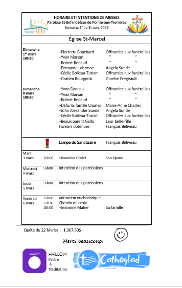 HORAIRE ET INTENTIONS DE MESSES
